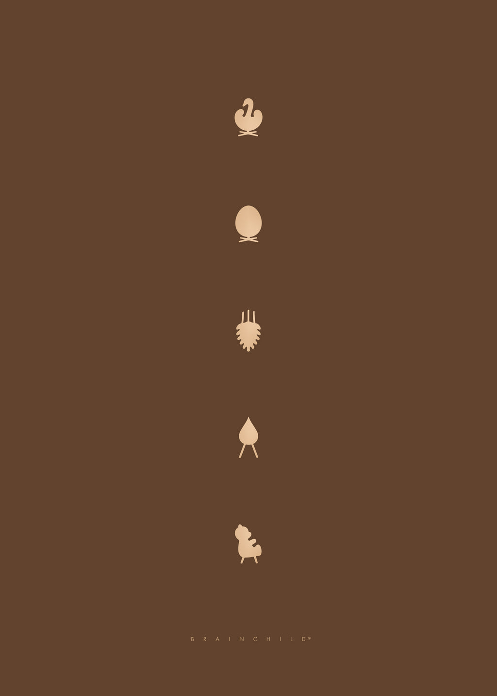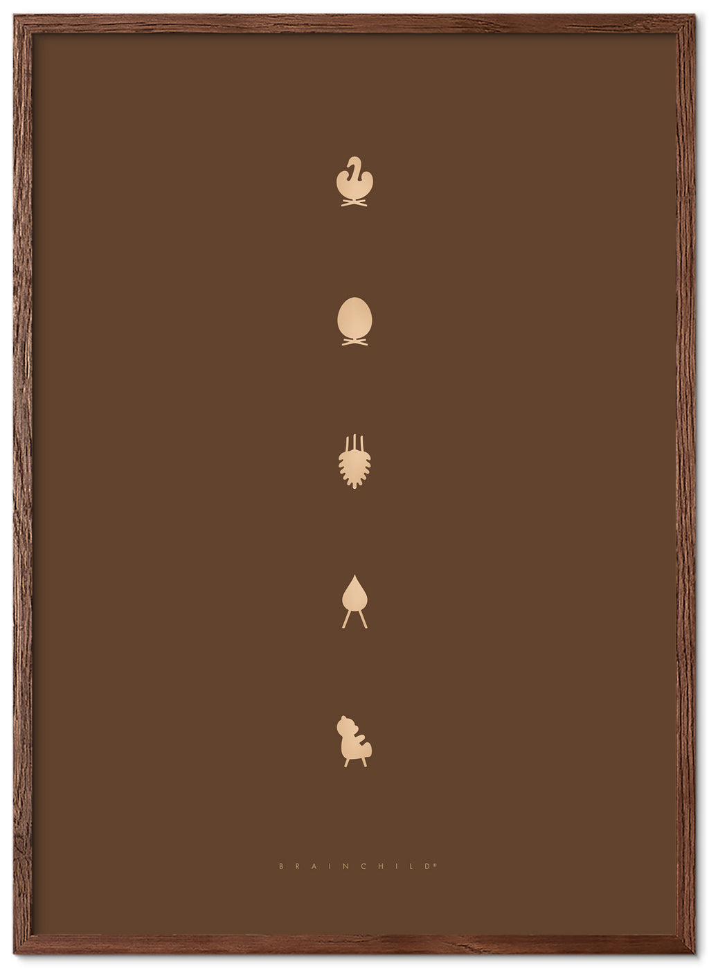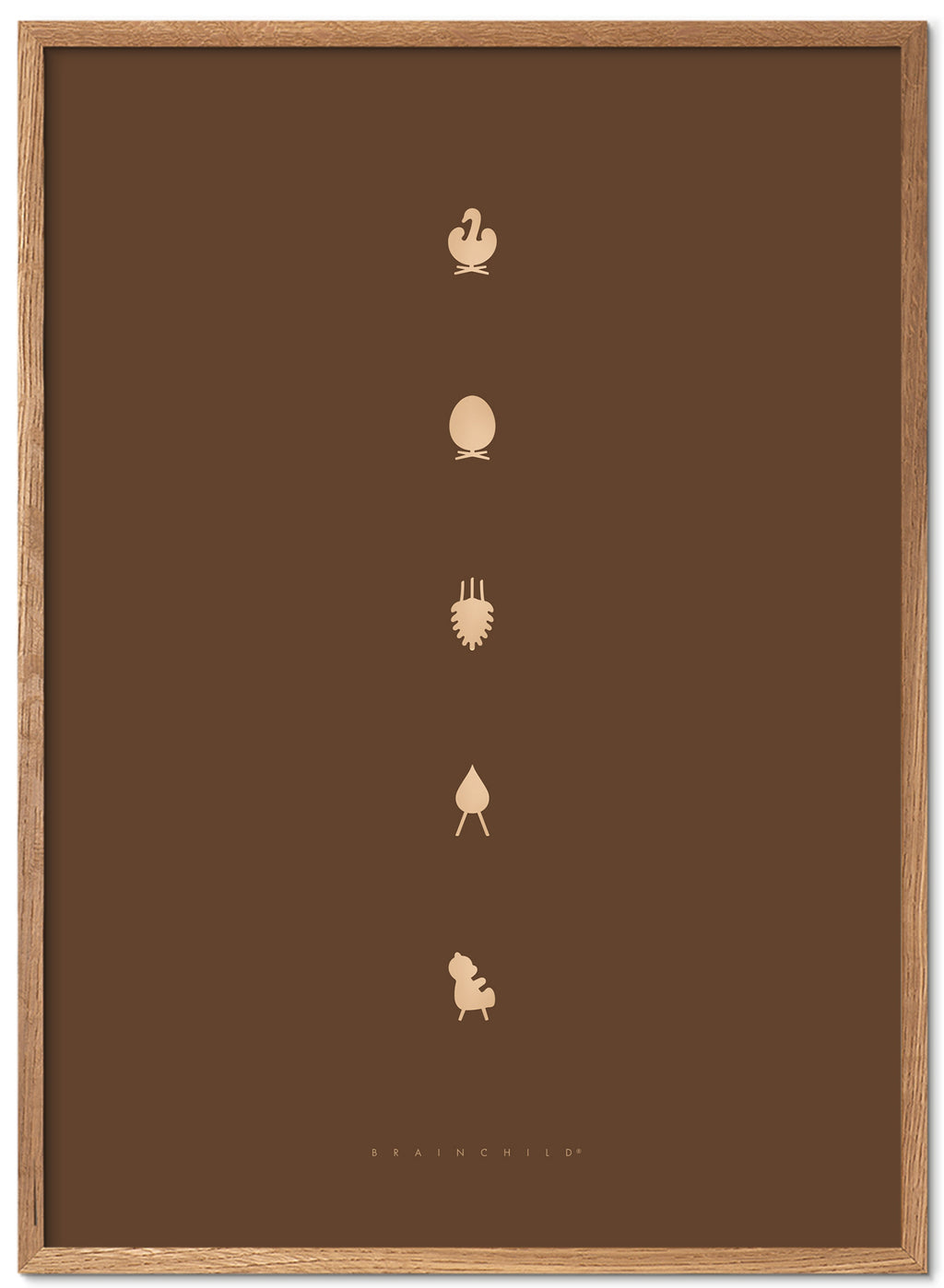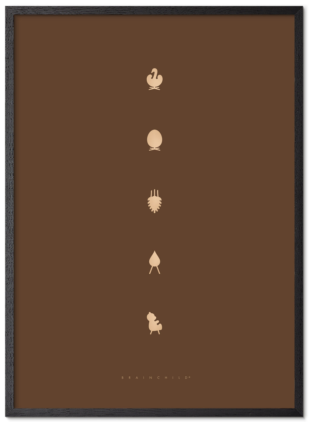 Bring timeless Danish design into your home with Brainchild’s poster featuring Design Icons on an elegant brown background. This poster showcases five classic Danish designs, each a literal interpretation of Danish design masterpieces. Included are The Egg, The Swan and The Drop–chairs designed by Arne Jacobsen in 1952 and 1958—as well as The Papa Bear, a 1951 armchair by Hans J. Wegner, and The Pine Cone, a lamp designed by Poul Henningsen in 1956. Brainchild’s Design Icons are timeless pieces of Danish design that will elevate your home decor for years to come.